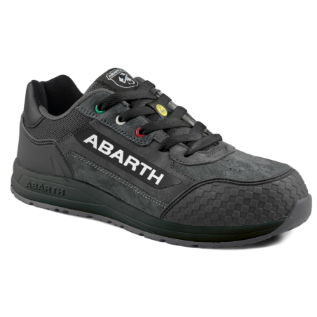 La línea de calzado Abarth 595 Challenge está fabricada y vertificada según la Norma EN 20345:2022, con puntera de fibra de vidrio extra resistente y plantilla textil anti-perforación.