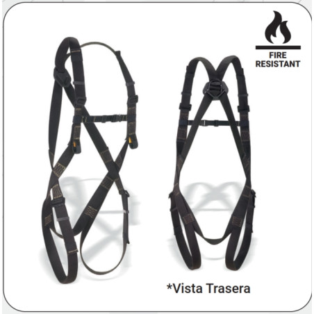 Características Arnés Fire Resistant regulable con enganche dorsal y frontal.