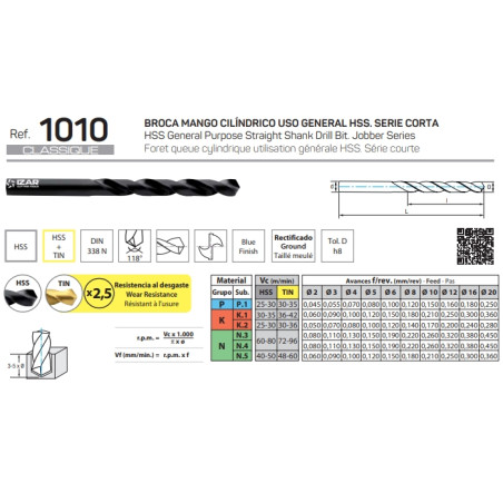 Descripción de la Broca Izar Classique 1010 HSS DIN338N