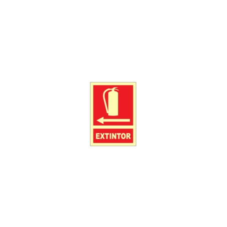 SEÑAL CLASE B FOTOLUMINISCENTE EXTINTOR (CON TEXTO) FLECHA IZQUIERDA.