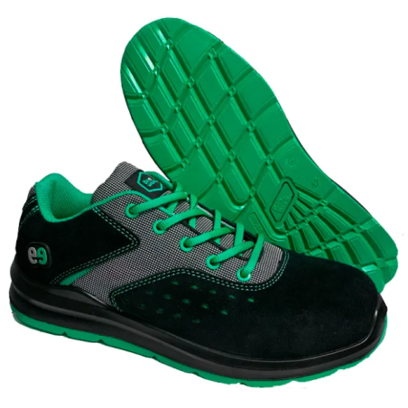 Deportivo de seguridad. Piel serraje. Puntera y plantilla no metálica. Suela PU/PU. EN IEC 61340-5-1:2024 ESD. EN ISO 20345:2022 +A1:2024 S1 PS CI FO SR.