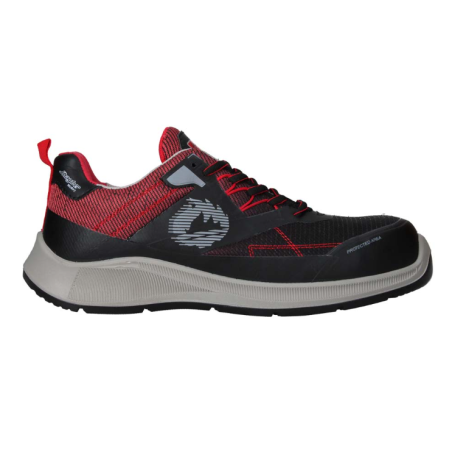 Calzado de seguridad MONACO en negro con detalles en rojo.