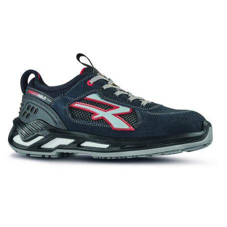Zapatos de seguridad bajos, ligeros y cómodos U-Power de la línea Red 360, con parte superior de nailon ultraflexible y gamuza suave, collarín con tejido de fibra Lycra®, escudo anti- impactos en el talón, puntera de aluminio, antiarrugas, antideslizante y suela de poliuretano PU / PU, S1P SRC ESD