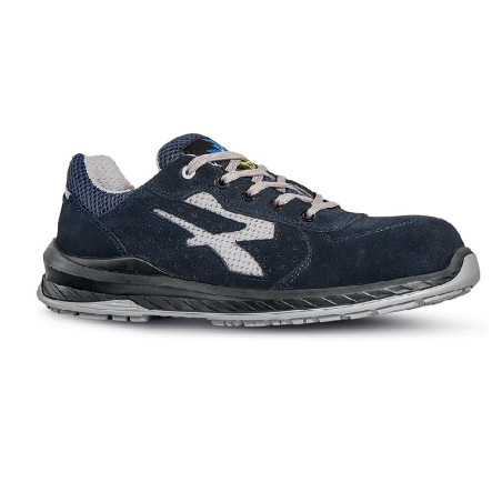 Zapatos de seguridad ligeros y cómodos con parte superior transpirable de suave gamuza perforada e inserciones de malla azul. Bandas laterales y cordones blancos en contraste con forro interior WingTex con canales de aire para mayor transpirabilidad y comodidad.